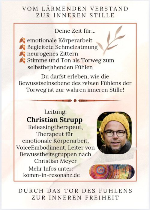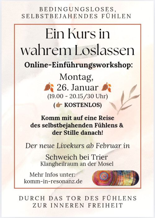 Magst du von mir bzgl. der Termine auf dem Laufenden gehalten werden, abonniere den Newsletter.